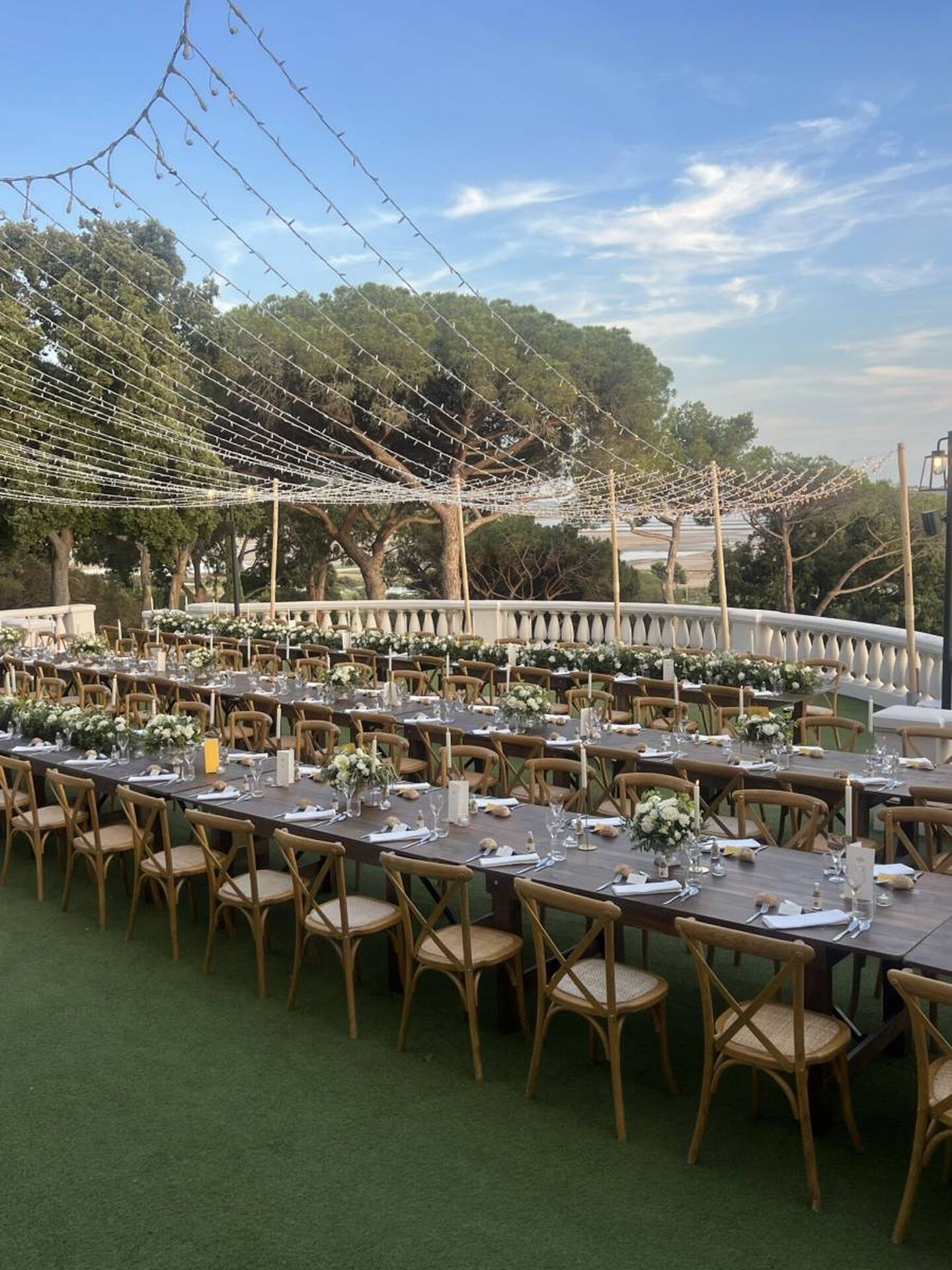 Dans le cadre d'un mariage à Hyères-les-Palmiers dans le Var (83-PACA), les électriciens d'Electrika E83 ont réalisé l'éclairage extérieur décoratif de l'espace, en installant notamment un ciel étoilé. Composé de guirlandes LED, cette solution apporte éclairage et décoration aux réceptions.