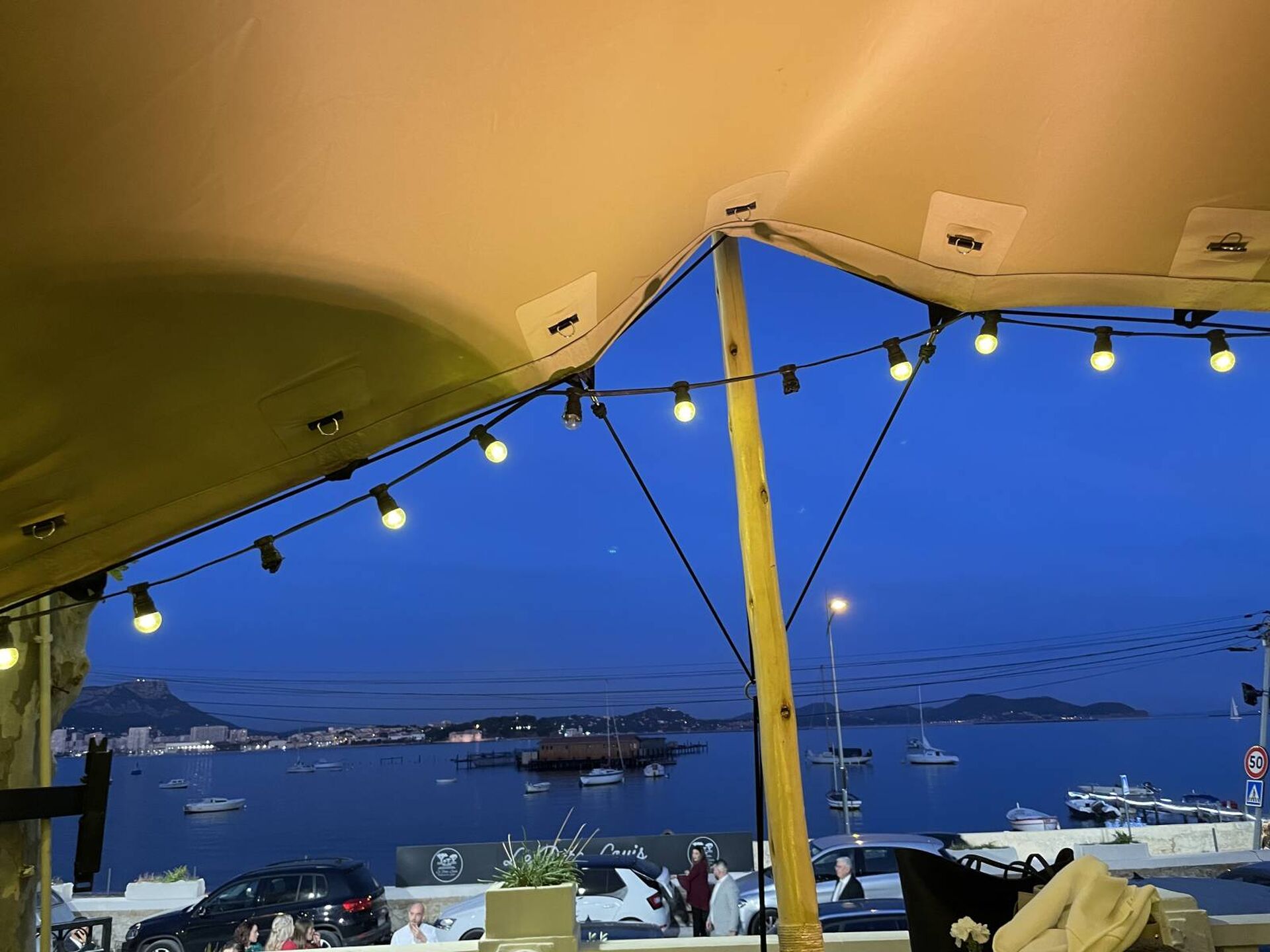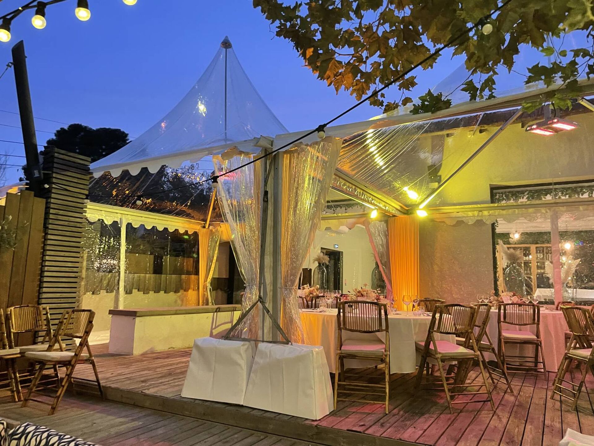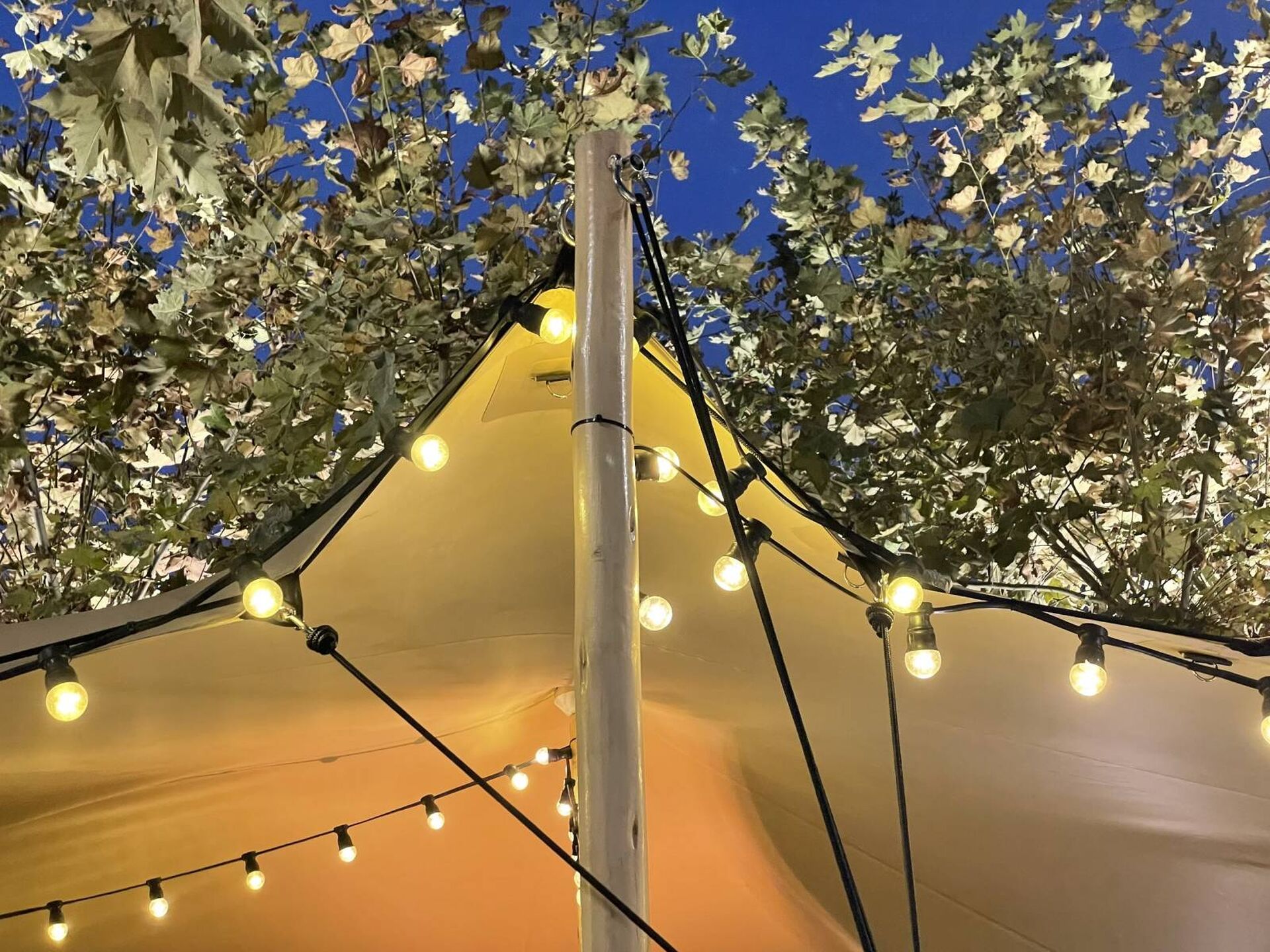 Des guirlandes type "Guinguette" ajoutent du cachet à la tente